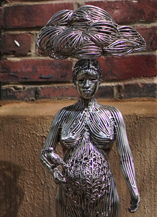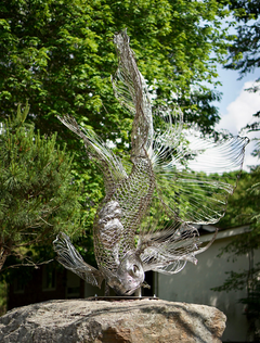 ByeongDoo Moon was born in Korea and moved to the United States after years of traveling the world showcasing his artwork. He now resides on Long Island. He began in the arts with drawing out of curiosity at a young age. In high school, an art teacher, who was also a sculptor, brought him into the art club and his course hasn’t changed since. His form of work shifts back and forth between what he sees and what we see. Linear objects convey meaning by vibrating at the boundary between sight and memory. He explores an aspect of the existential question of modern people living today. ByeongDoo Moon is a sculptor who has mastered the art of stainless steel to explore the coexistence of humans and nature. Developing a sense of unity through countless bending and welding of sharp, cold wires, he has created work that delves into the temperature of living creatures and metal.